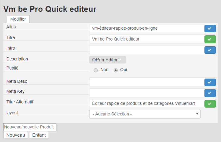 Le module Editeur Rapide VM Be Pro d'édition rapide, vous permet de faire des modifications sans quitter votre page actuelle. Il permet de retravailler votre SEO et de voir le résultat en quelques secondes.